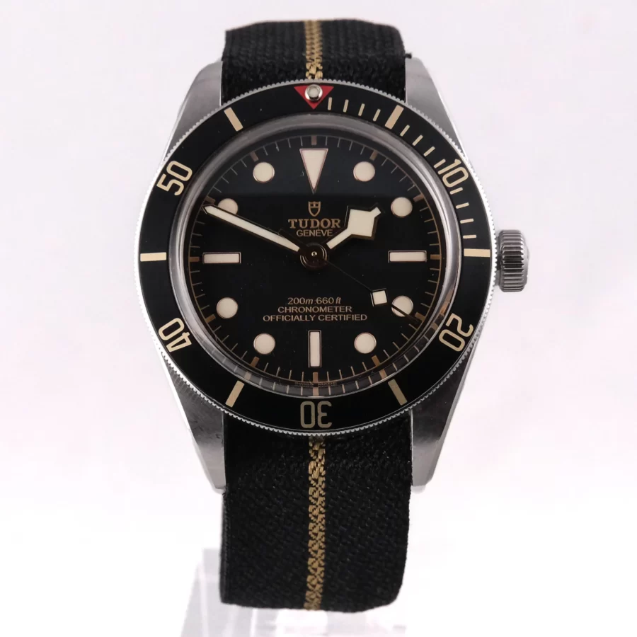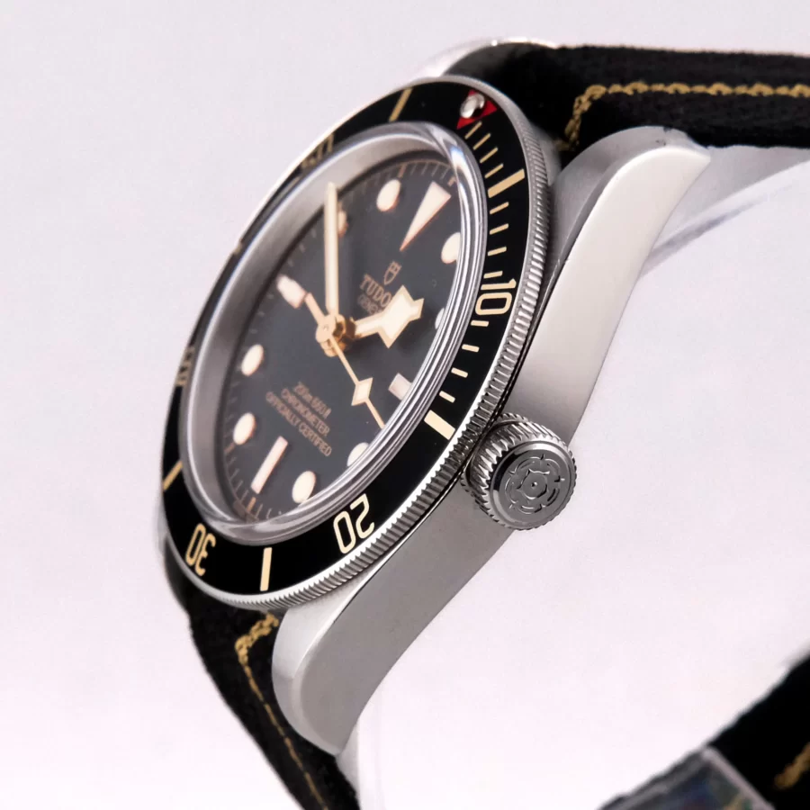 Description: The Tudor Black Bay is a bit of a favourite here at Fine Watches. Every bit as iconic and robust as the Rolex Submariner, and arguably cooler with its distinctive snowflake hands, the Tudor Black Bay, and vintage Tudor Submariners, represent unarguable value when compared to their Rolex cousins.